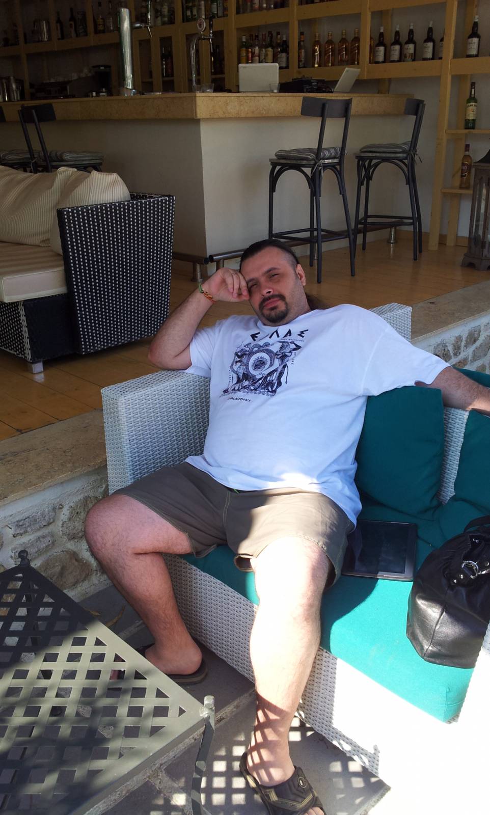 Вот такие комфортные диванчики стоят возле нашего отеля.