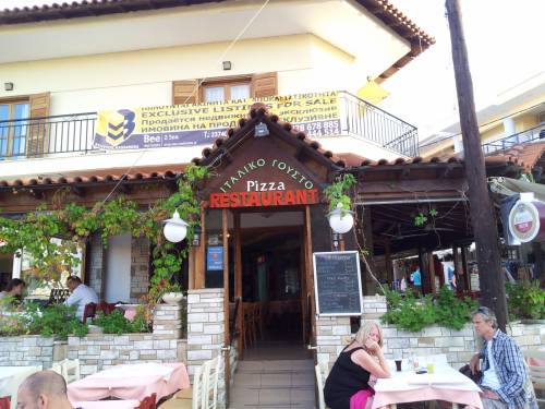 Отличная пиццерия в самом центре Ханиоти. Нам очень понравилась. С удовольствием брали оттуда пиццу на пляж. Приличного размера пицца стоит 5 евро - если с собой, и 6 евро - если кушать в ресторане. Та пицца, что у них считается маленькой - у нас равна средней. Средняя - большой. А их большая пицца - просто гигант! :)